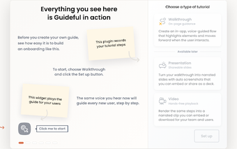 Met Guideful kunnen gebruikers gidsen creëren voor cruciale momenten, zoals de eerste sessie en de eerste succesvolle actie. Dit voorkomt dat gebruikers afhankelijk zijn van documentatie, onboardinggesprekken of trial-and-error. Guideful richt zich op het begeleiden van gebruikers op de belangrijkste momenten binnen het product, wat het ideaal maakt voor SaaS-onboarding, activatieflows en producteducatie bij de eerste keer gebruik.